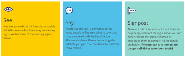 Someone who is thinking about suicide will usually tell you truthfully and in that moment you have the opportunity to have a conversation that could save a life. You saw the signs, you said the words “are you feeling suicidal” and now you have the opportunity to help them stay safe in the moment and signpost them towards the support they need. This is the basis of our Reach Out Liverpool Suicide Prevention campaign where anyone can access a 20 minute online session to build the awareness and confidence to have this potentially life saving conversation.