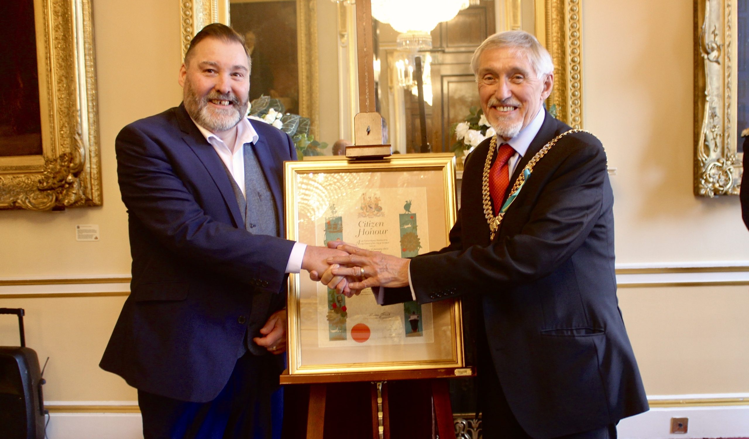 Bob Blanchard received the ‘Citizen of Honour’ award at Liverpool Town Hall on Tuesday 16 May.
