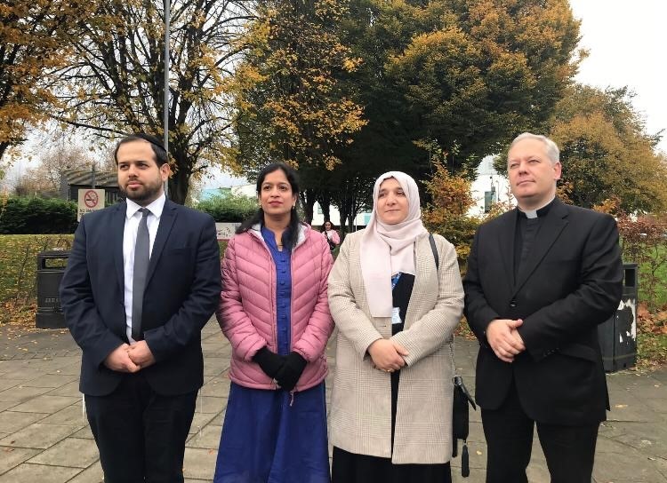 Representatives of the Christian, Muslim, Jewish and Hindu faiths gathered outside Liverpool Women’s Hospital in Toxteth.