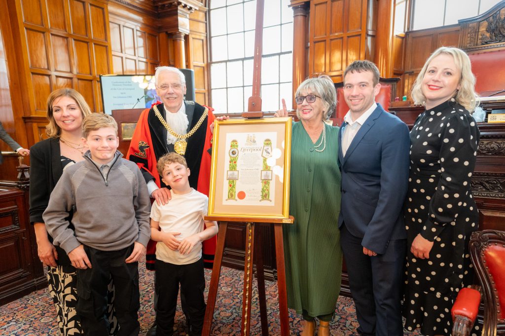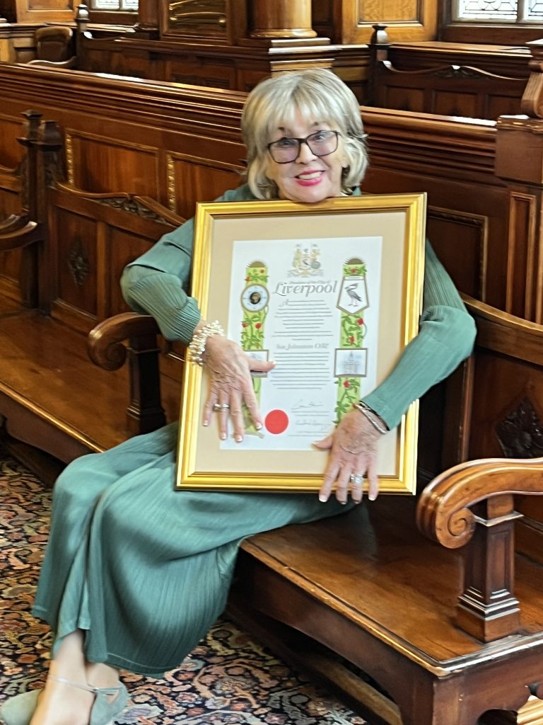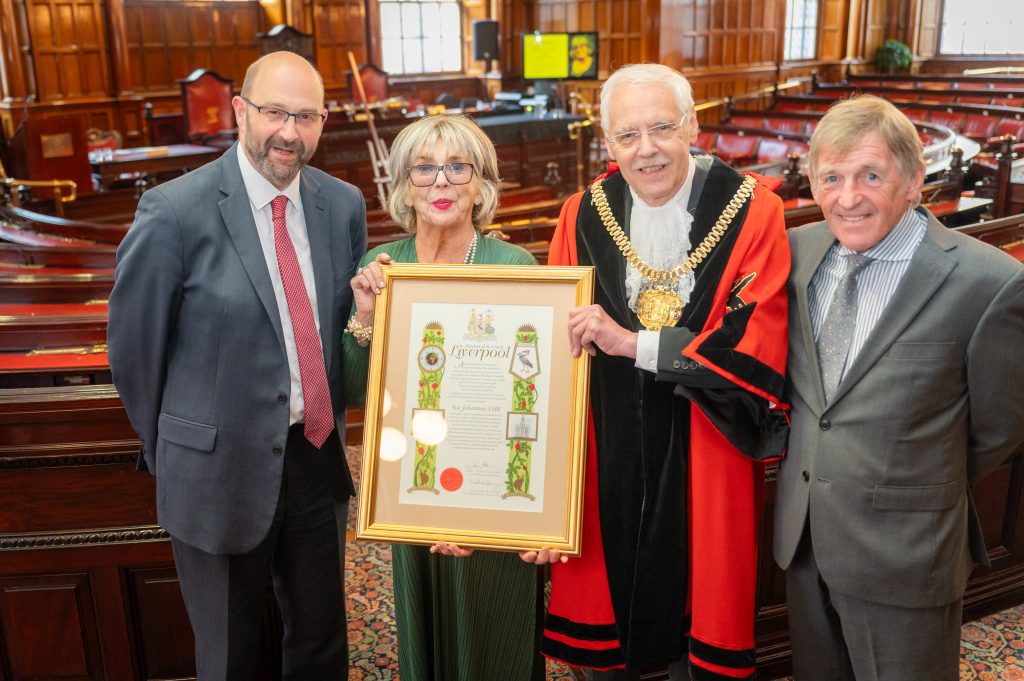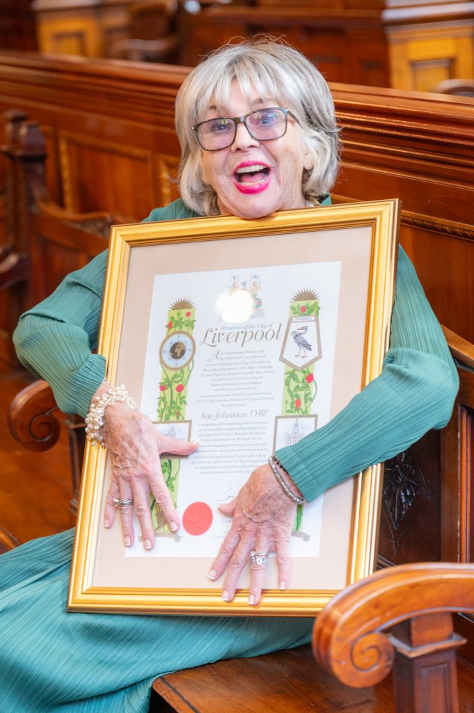 Sue, hailed “a national treasure” by Council Leader, Cllr Liam Robinson, received the award at Liverpool Town Hall in the company of fellow Freeman such as her long-time screen husband Ricky Tomlinson, Liverpool FC icon Sir Kenny Dalglish and film producer Colin McKeown.