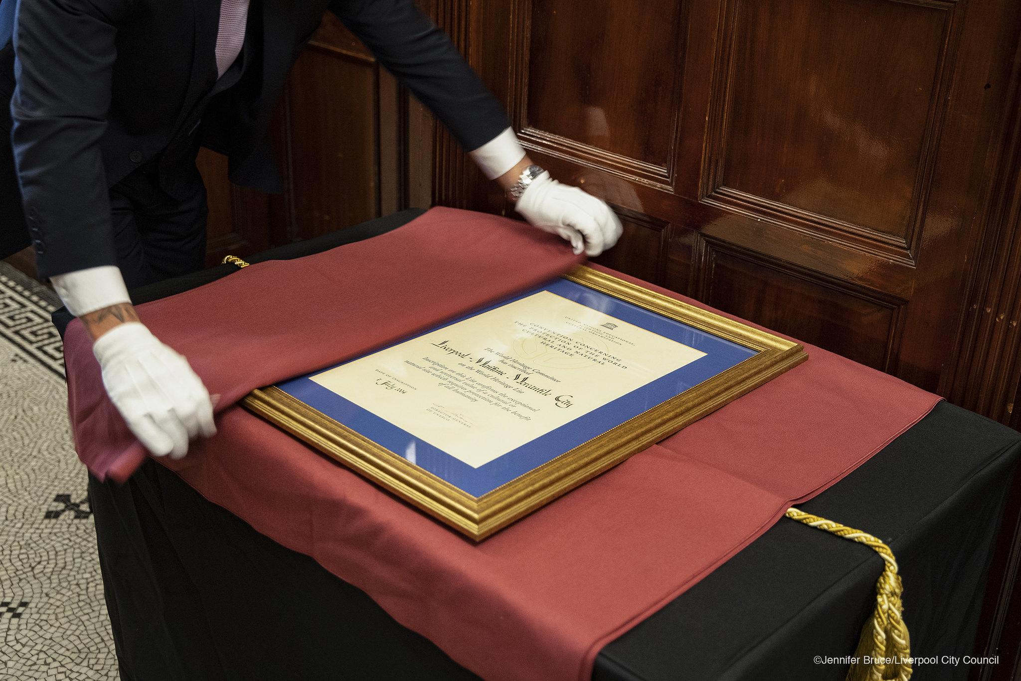 Liverpool’s World Heritage Site designation certificate has now been removed from Liverpool Town Hall, following UNESCO’s decision to delete the city’s status.