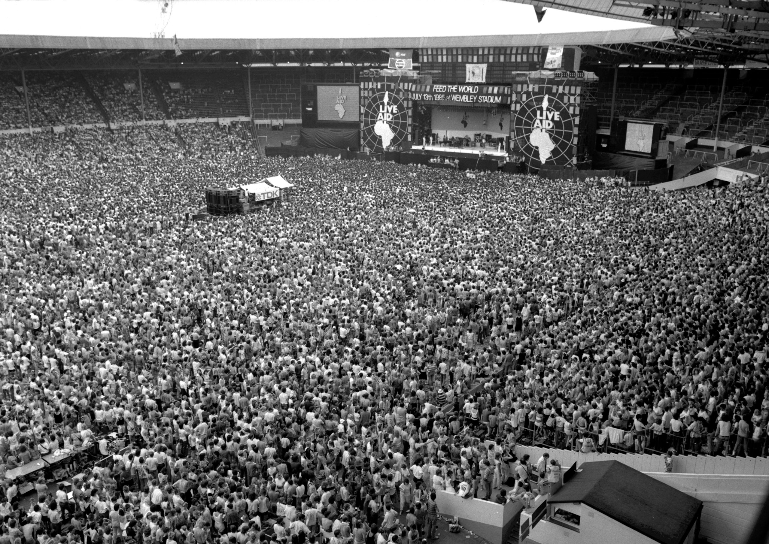 The ground-breaking concert was planned as a “global jukebox” and a continued response from the music industry and fans to the famine in Ethiopia. The concert was truly global, advances in technology allowed for its broadcast to over 150 countries. 72,000 people attended Wembley Stadium and 90,000 packed into the John F. Kennedy Stadium in Philadelphia. Estimates of the global TV audience vary, the highest of which (1.9billion) would have equated to around 40% of the world’s population at the time.