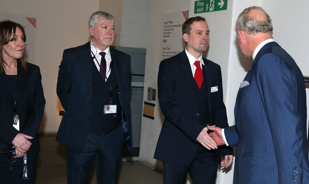The most recent visit to St George’s Hall by HM the King is where the story becomes more personal to me. In 2019 I was working in the building on the day that Prince Charles visited. Then, Prince Charles was welcomed by the Hall Manager Alan Smith who took the Royal guest on a tour of the building including a look behind the scenes in the Hall’s basement which houses the miles of Victorian pipes that were integral to the original pioneering heating and ventilation system. St George’s Hall effectively became the world’s first air-conditioned building when the Courts opened in 1851.