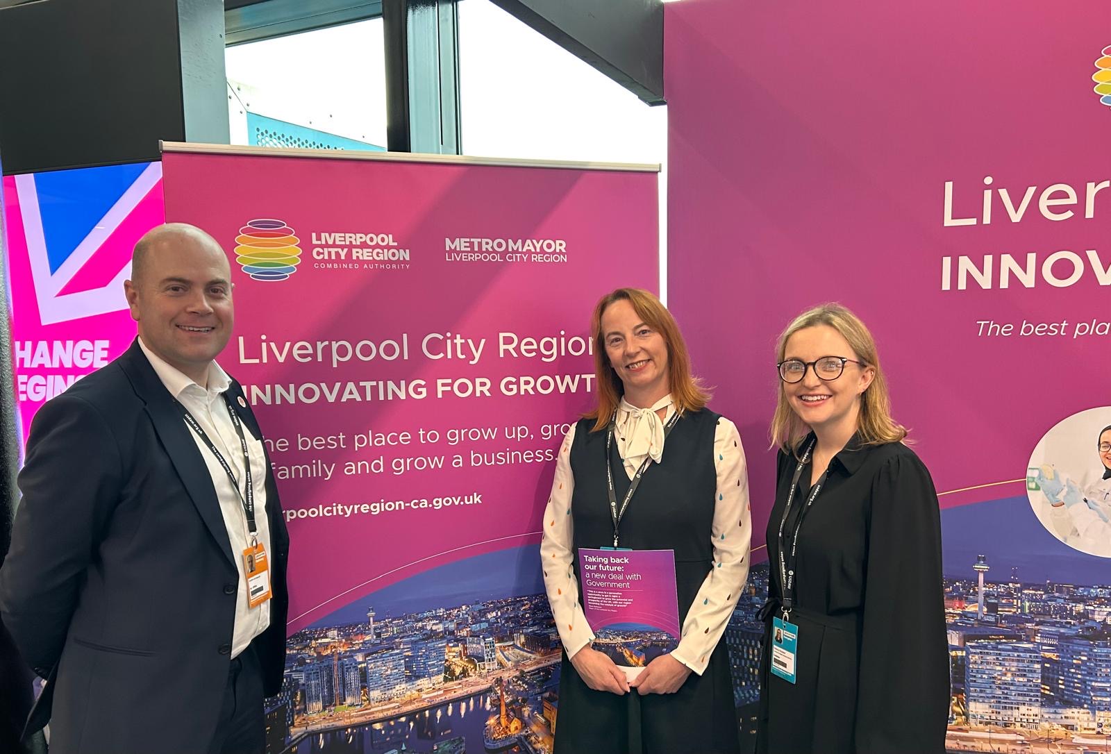 Pictured is Cllr Robinson with staff from Liverpool City Region Combined Authority at their stand at the conference.